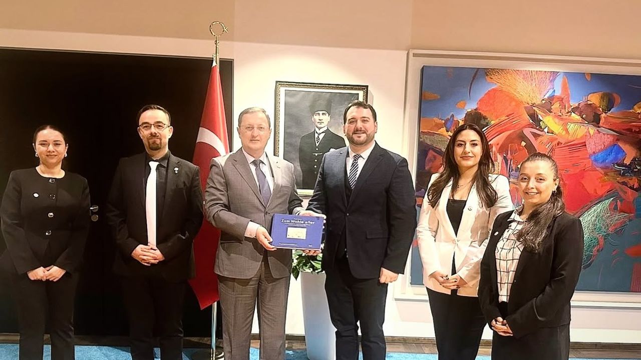 “Berlin’e gerçekleştirdiğimiz çalışma ziyaretimiz kapsamında ilk durağımız T.C. Berlin Büyükelçiliği oldu. Yeni görevine başlayan T.C. Berlin Büyükelçisi Sayın Gökhan Turan’a nezaket ziyaretinde bulunduk. Sayın Büyükelçimizle yaptığımız kapsamlı görüşmede; Türkiye’den Almanya’ya gerçekleşen işçi göçünün tarihsel arka planı ve Türk toplumunun Almanya için taşıdığı önem üzerine verimli bir değerlendirme yapıldı. Kendisinin Duisburg’daki okul yıllarına ilişkin paylaştığı kişisel izlenimleri dinlemek bizim için ayrıca ilham vericiydi.”
